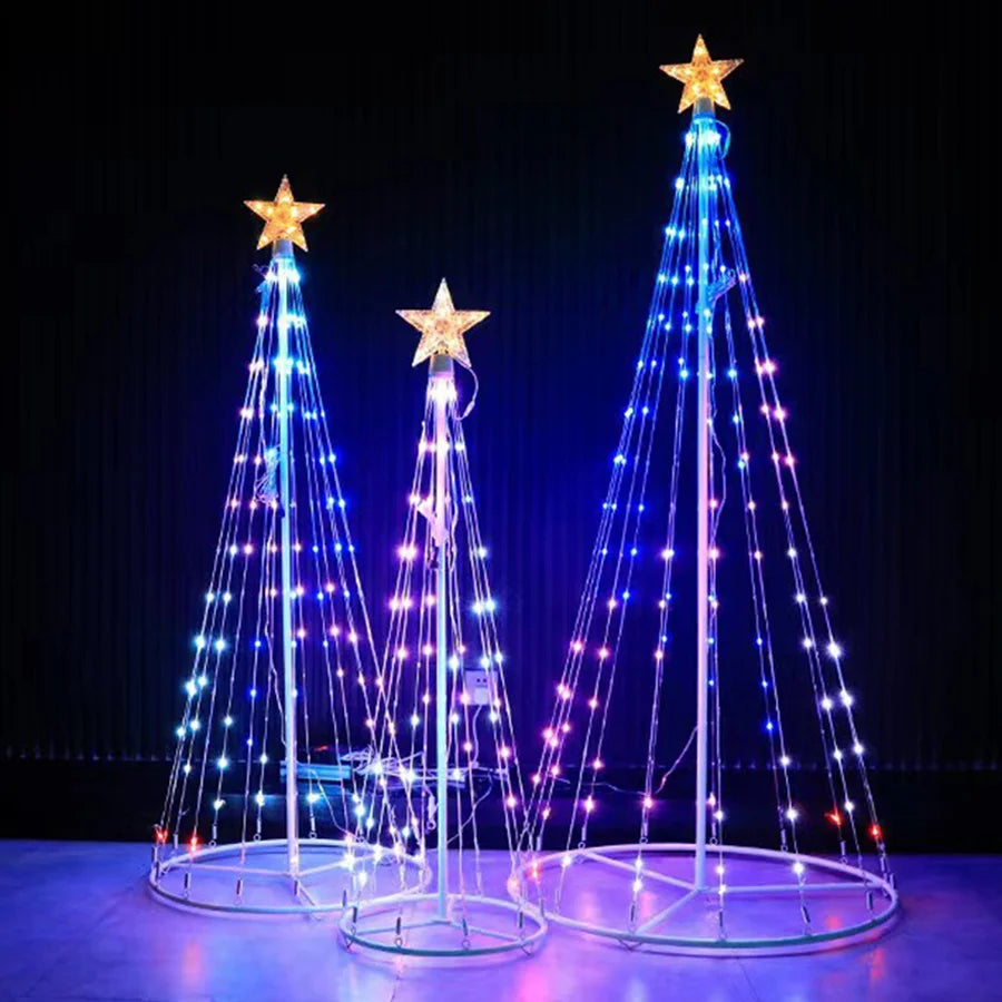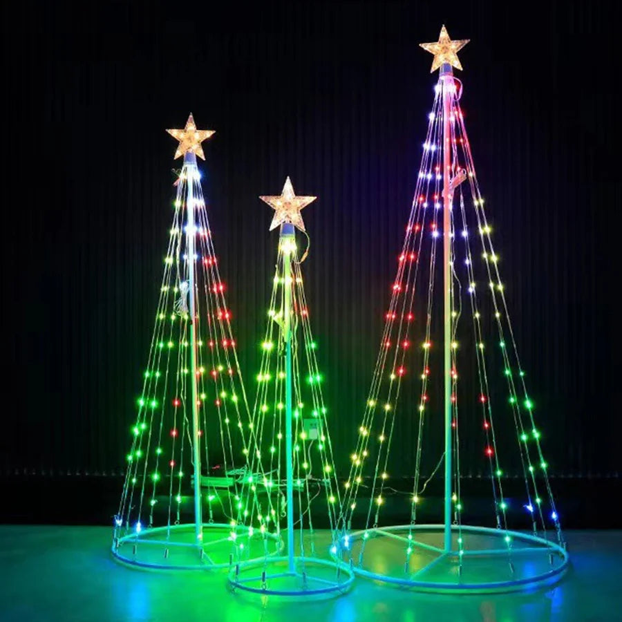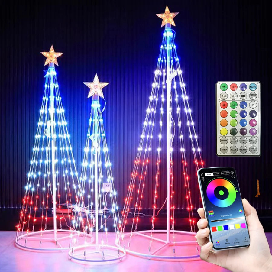 1.5/1.8/2.1M Smart App Control Christmas Cone Tree Lights With Topper Star RGB Bluetooth App Artificial Lighted Chritmas Tree
