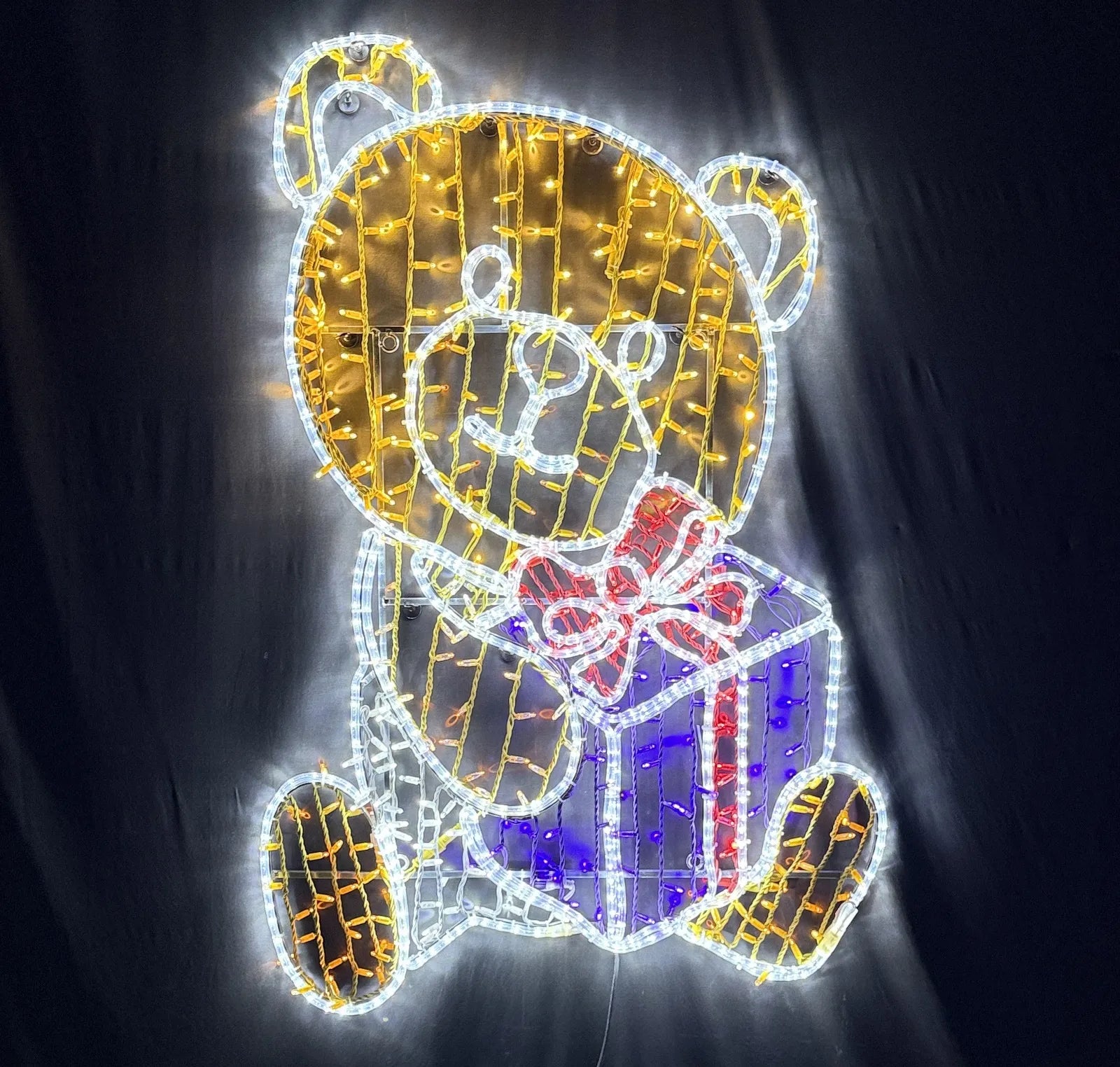 Big on cheer, built for impact. This oversized LED Teddy Bear brings festive wonder to life with rich colours, steady glow, and all-weather durability—ideal for public displays, shopfronts, and event spaces.