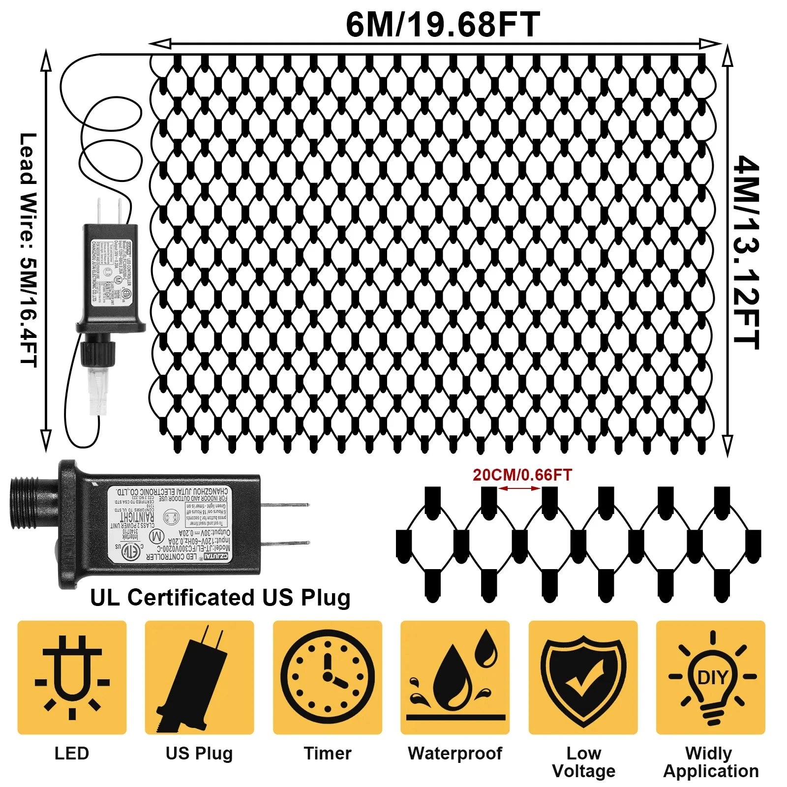 1.5x1.5M 3x2M 6x4M LED Net Mesh Fairy String Light 24V IP44 8 Modes Transformer EU US UK AU Plug With Timer Memory Outdoor Indoor Curtain Lighting
