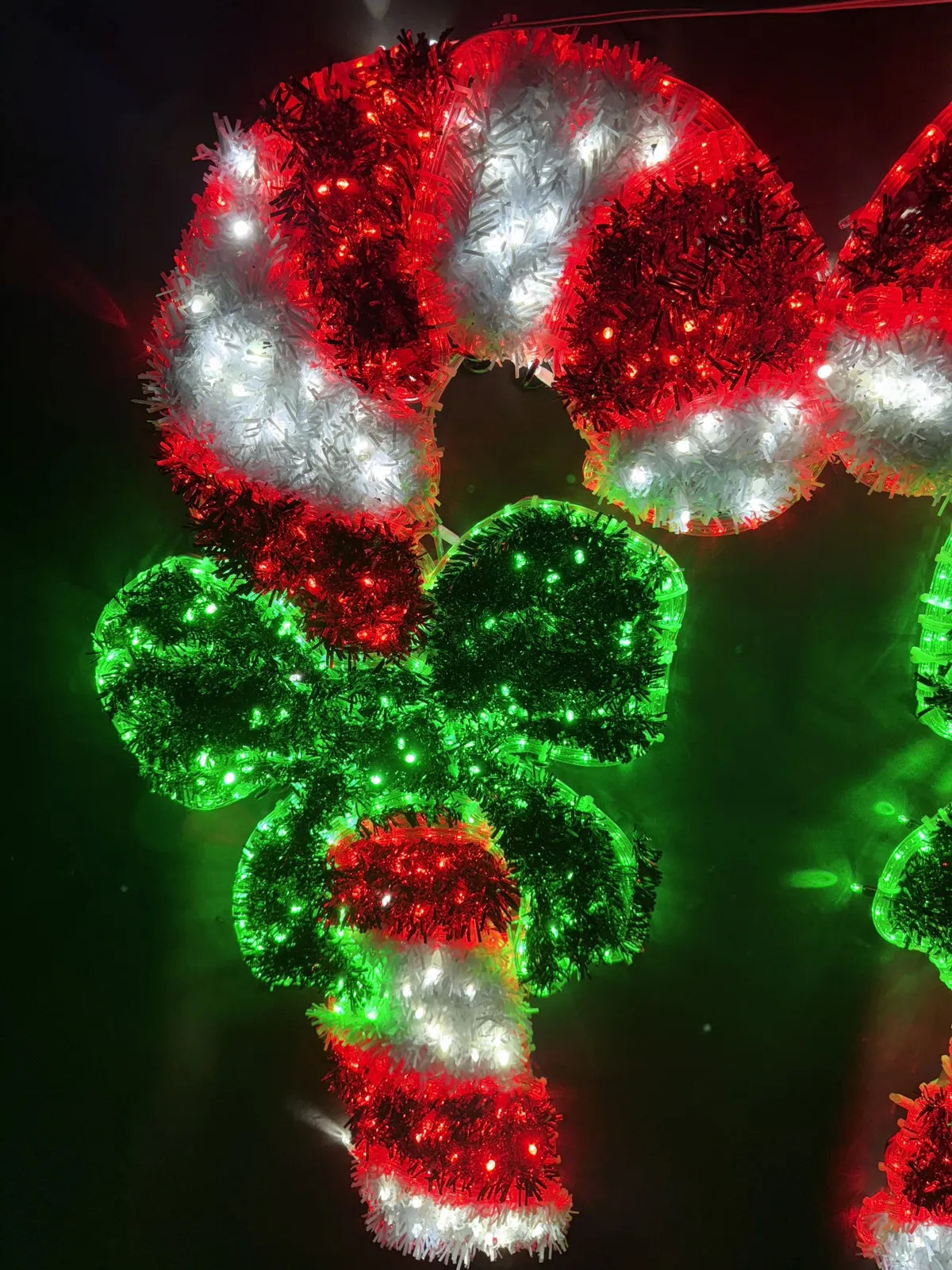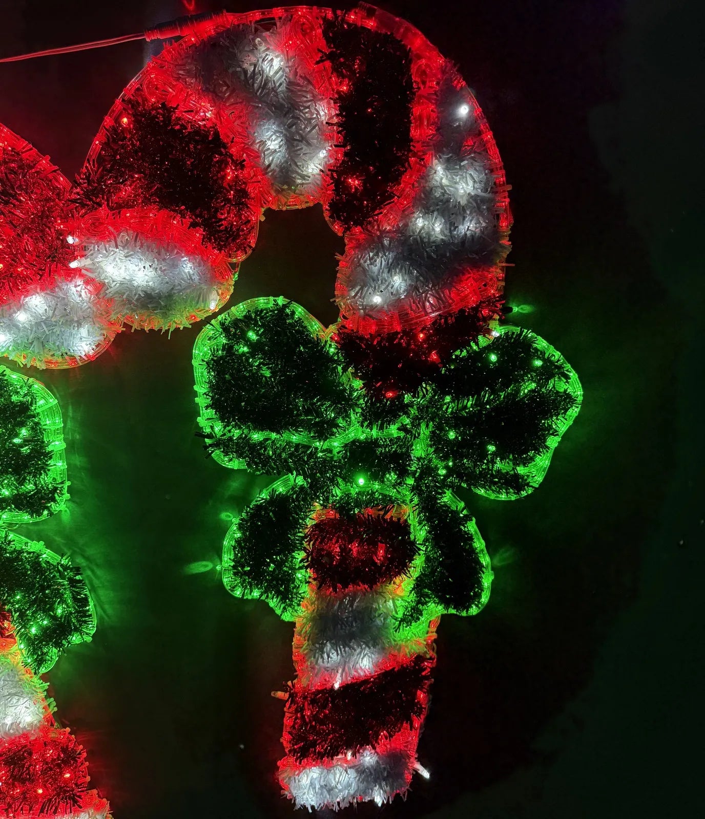 Add a festive flash to your display with this stunning pair of oversized candy canes—cool white brilliance, crisp design, and built tough for commercial sparkle.