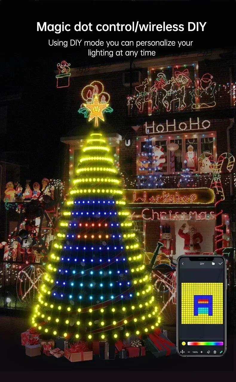 REMOTE CONTROL & APP: Experience a whole new level of holiday magic with our smart LED Christmas tree lights.Easily connect to the