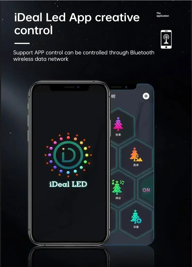 app via Bluetooth, available on both iOS and Android devices.Get complete control over brightness, speed, color mode, scene and timing