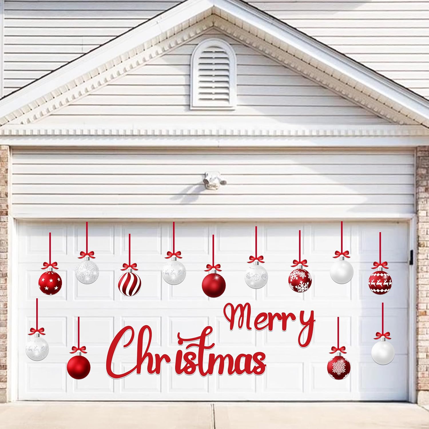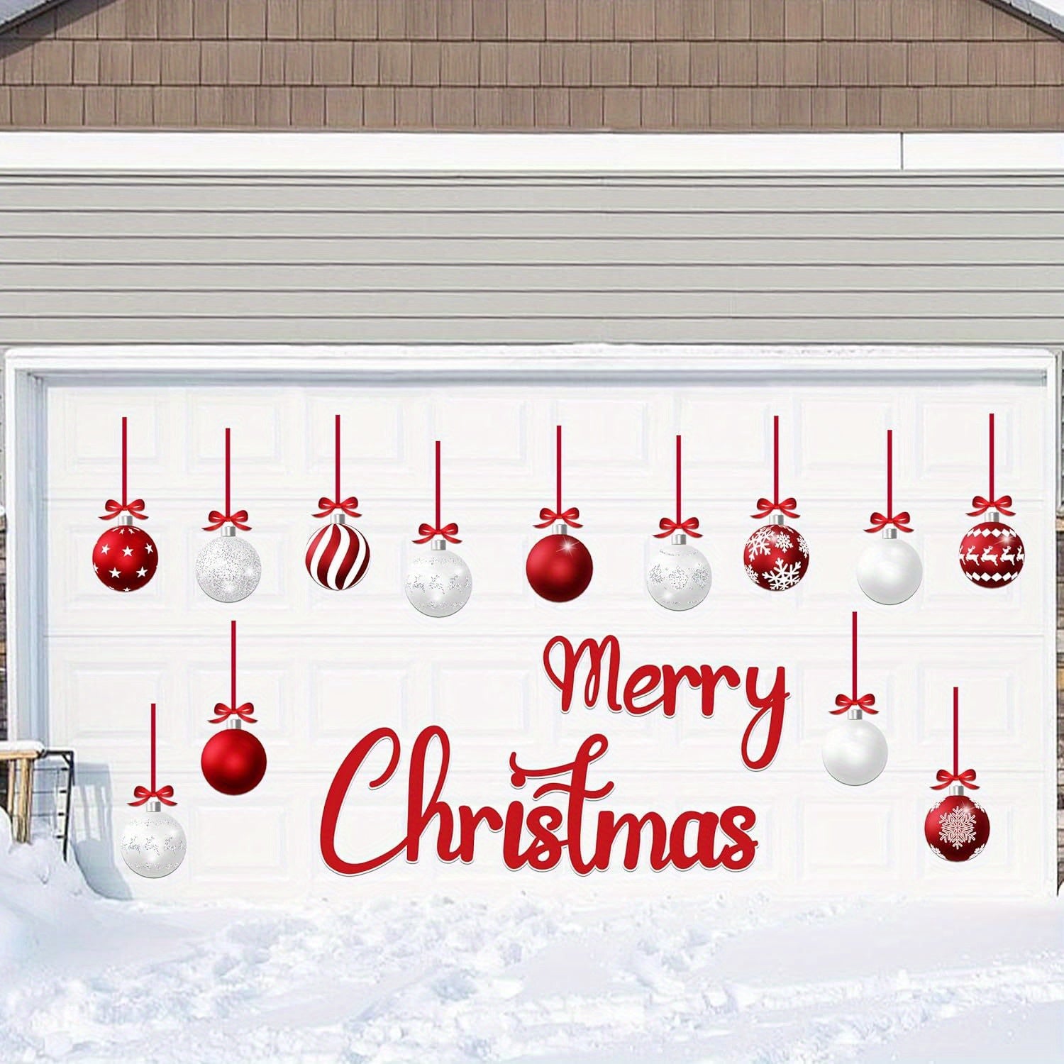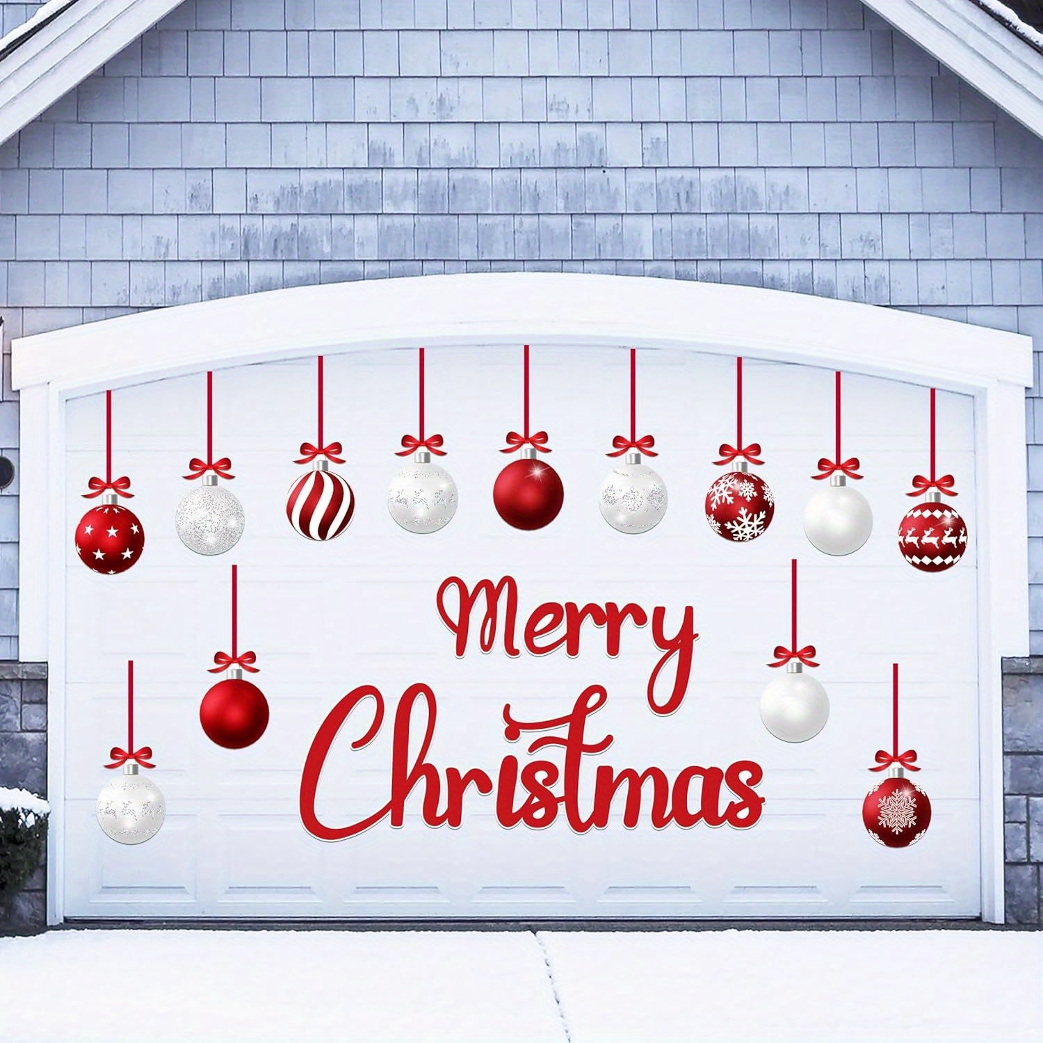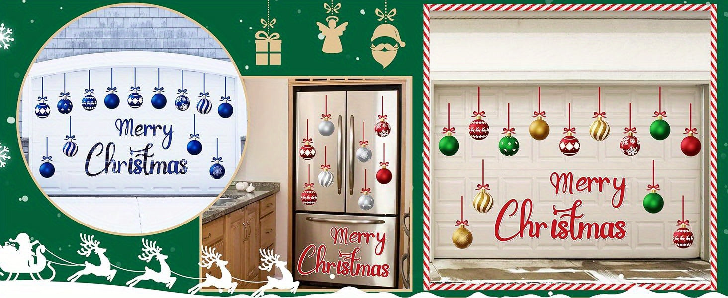 Transform your garage door with 13 Christmas ball magnets, 6 letter magnets spelling 'Merry Christmas', and 13 bow rope magnets, totaling 32 magnets! These large magnets will cover your garage door visibly. They have a strong magnetic hold, are adorned with festive prints, and have a magnetic back for easy removal without damaging the surface. They can be directly attached to any metal or magnetic surface, are adjustable and removable without leaving any residue. Spread holiday cheer to your neighbors with these festive magnets, perfect for decorating your garage door, refrigerator, metal front door, dry erase board, cabinets, and more. Enhance the holiday spirit by dressing up your garage door with these adorable magnets this winter!