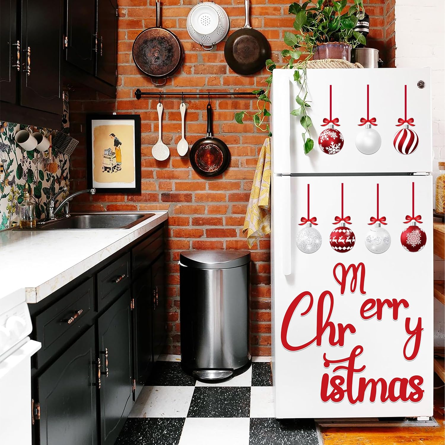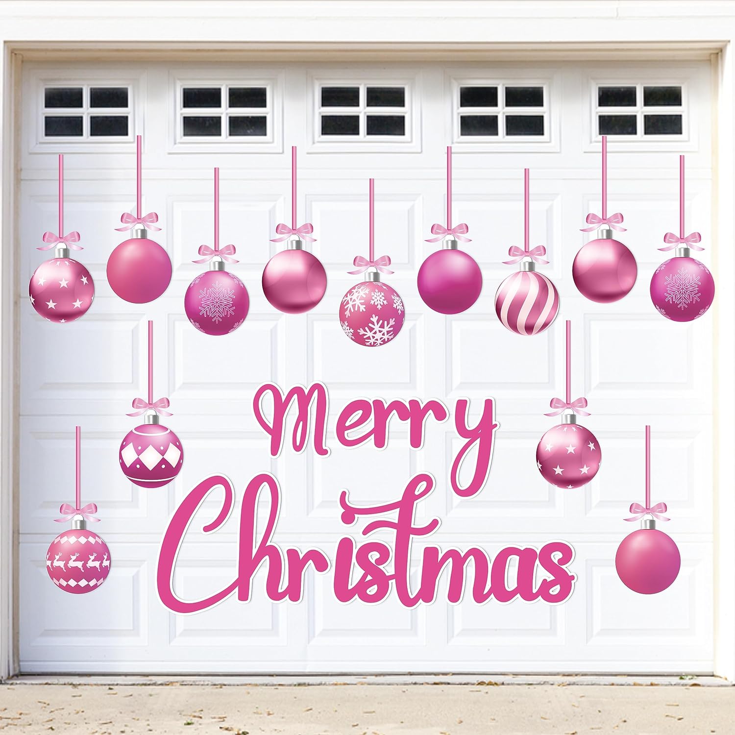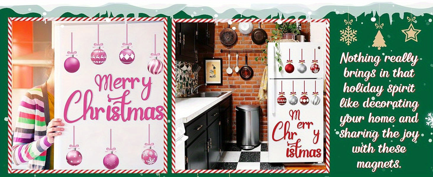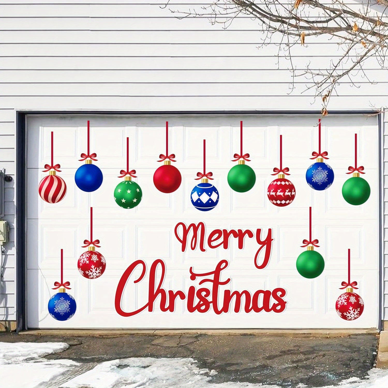 Transform your garage door with 13 Christmas ball magnets, 6 letter magnets spelling 'Merry Christmas', and 13 bow rope magnets, totaling 32 magnets! These large magnets will cover your garage door visibly. They have a strong magnetic hold, are adorned with festive prints, and have a magnetic back for easy removal without damaging the surface. They can be directly attached to any metal or magnetic surface, are adjustable and removable without leaving any residue. Spread holiday cheer to your neighbors with these festive magnets, perfect for decorating your garage door, refrigerator, metal front door, dry erase board, cabinets, and more. Enhance the holiday spirit by dressing up your garage door with these adorable magnets this winter!