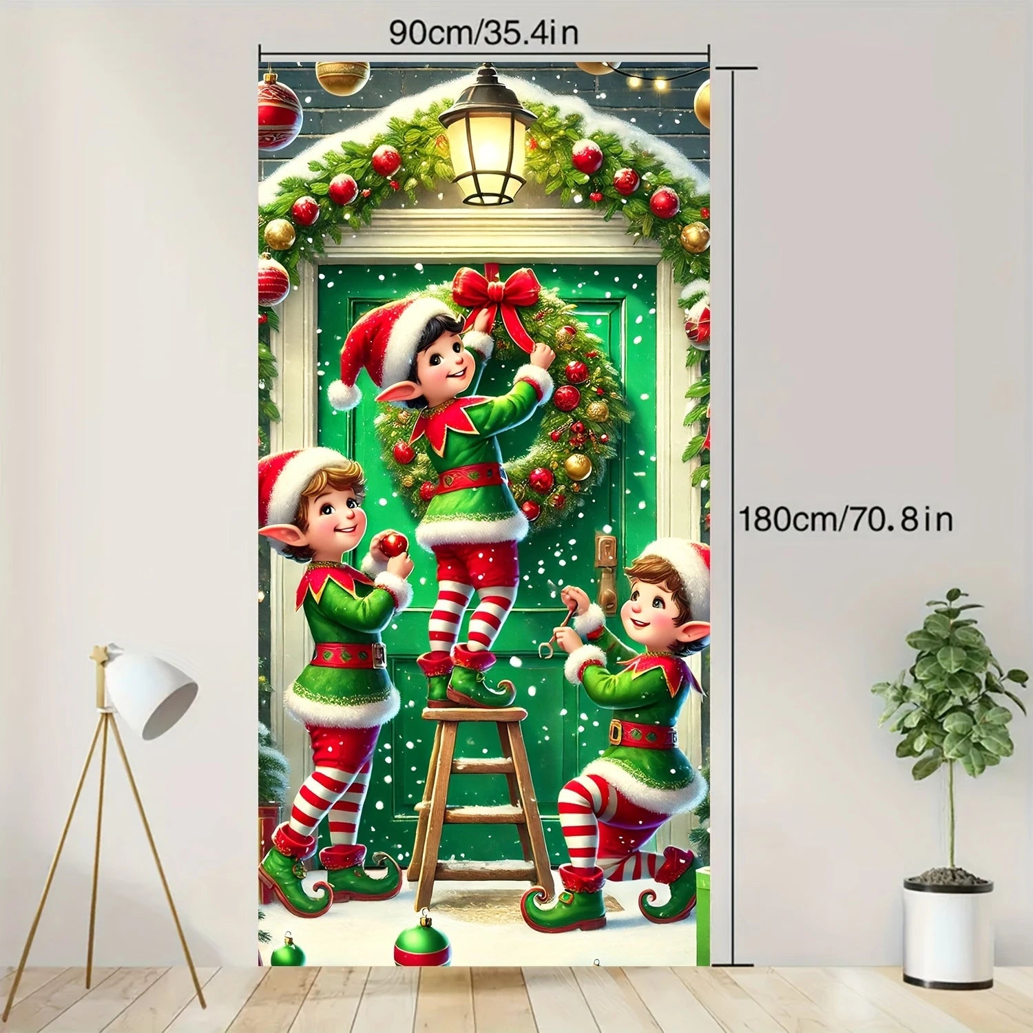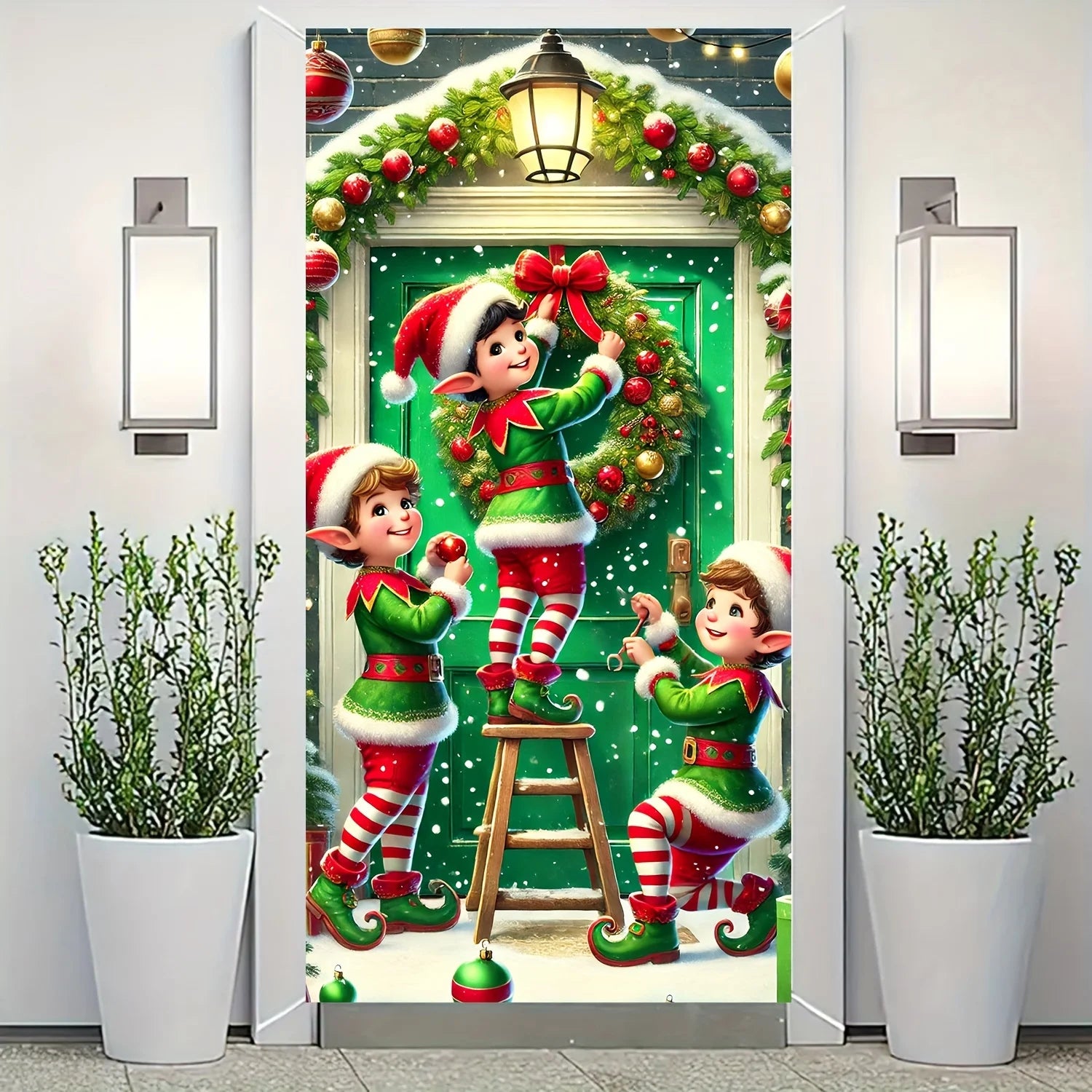 Christmas Elves Wreath Door Cover