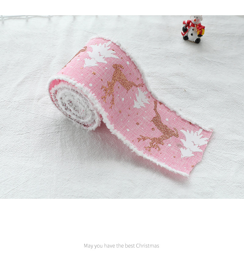 Christmas-Themed Decorative Wired Ribbon Burlap– Reindeer and Tree Print Rolled Fabric Set ,Diameter 6.8 cm, length 2 cm (two set, 6 pieces in total)