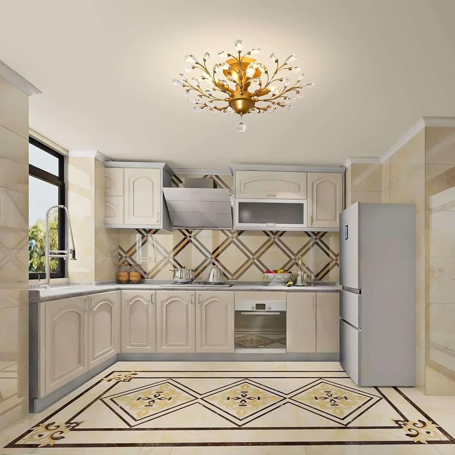 - VERSATILE STYLE: Add a touch of elegance to any room with this stunning crystal ceiling light. Choose from two colors - gold for a classic look or black for a more modern, retro feel - to create the perfect atmosphere in your hallway, bedroom, living room, dining room, kitchen, bar, hotel, balcony, stairwell, children's room, or any other small space. This eye-catching light will be sure to draw attention to your well-appointed space.