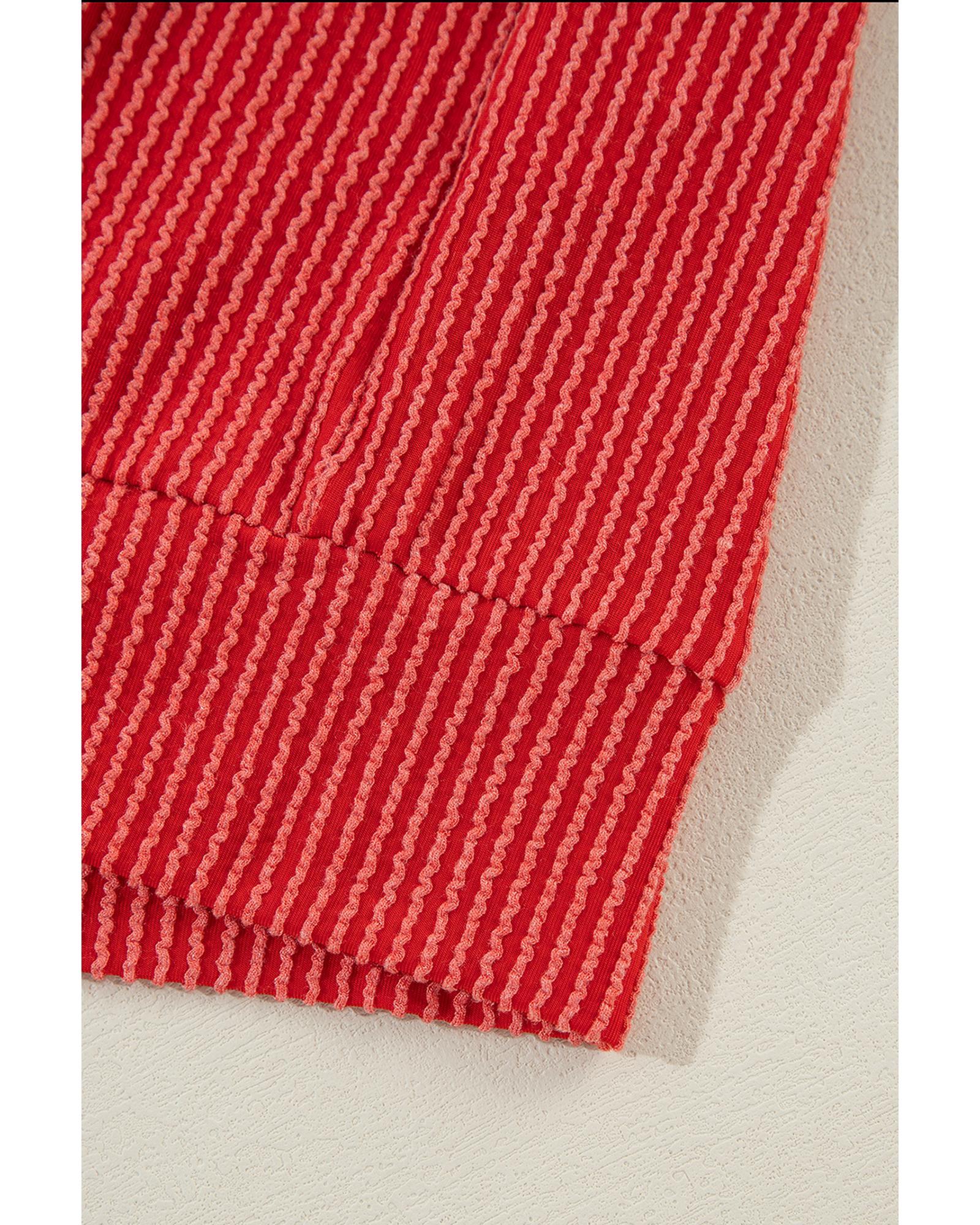 Fiery Red JOLLY Corded Long Sleeve Top and Pockets Pants Set - L