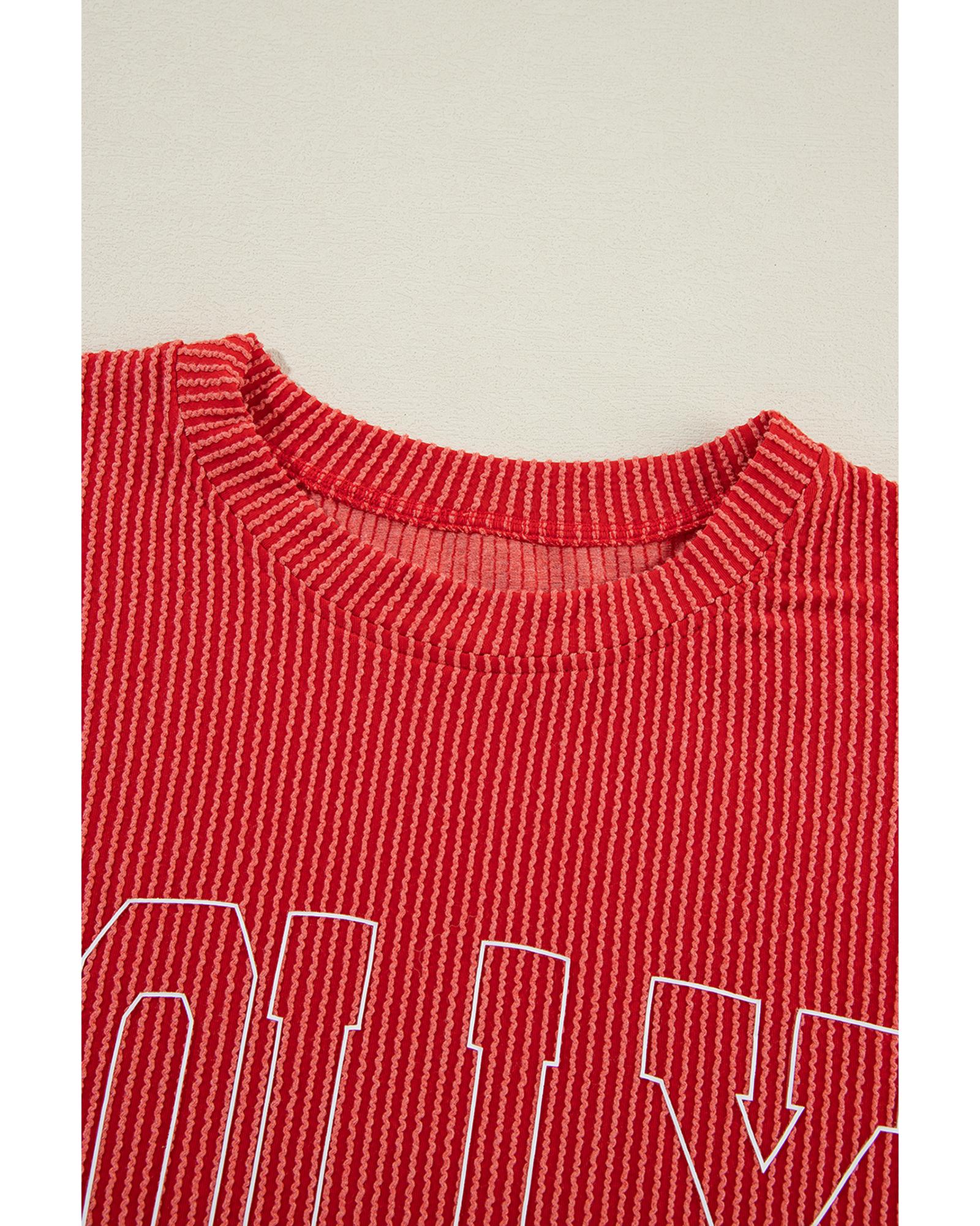 Fiery Red JOLLY Corded Long Sleeve Top and Pockets Pants Set - XL