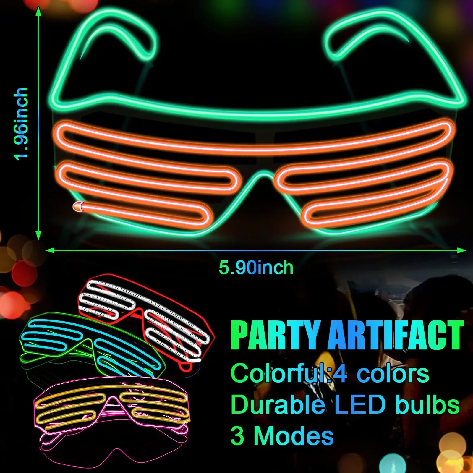 Multi-purpose: the wire neon light up glasses are suitable for many occasions, such as masquerade, bar, Halloween party, etc.; The exquisite and cool appearance and light-emitting mode make you the focus of the party immediately and attract everyone's attention.