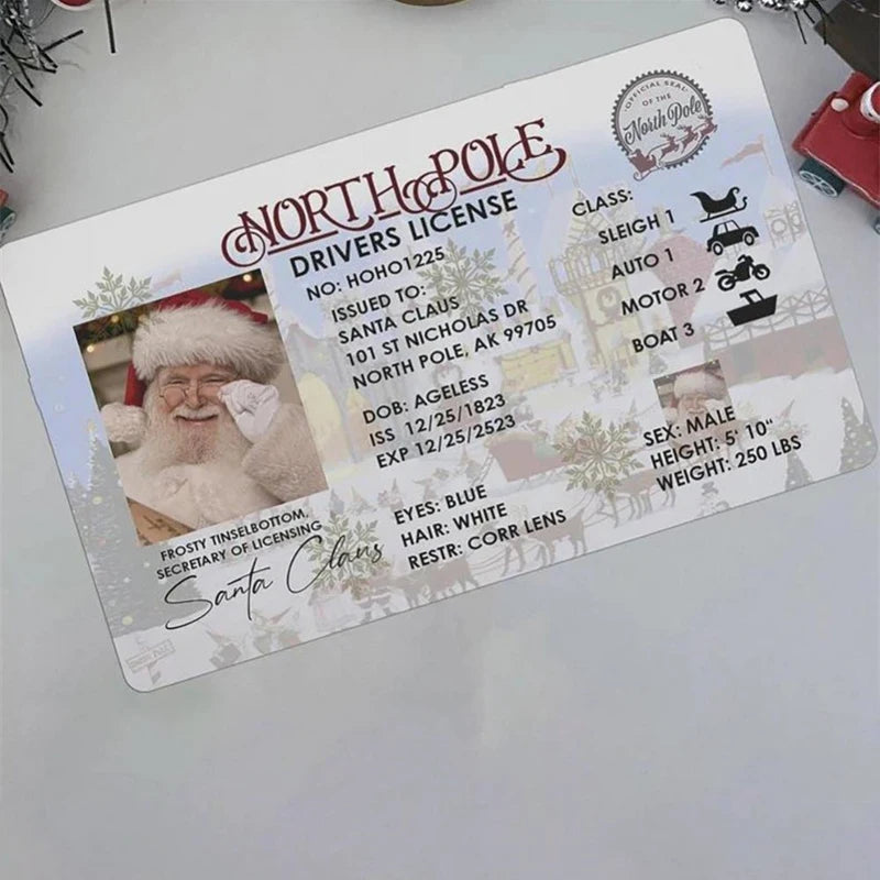 The Official Santa License, Imagine the Kiddies faces when the find proof of Santa's visit? Or maybe one of the naughty Elf on the Shelf's took it and left it at your house and now you have to leave it out for santa!